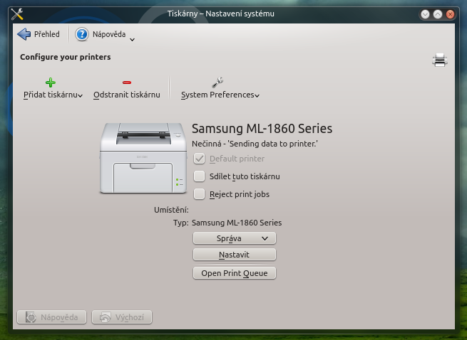 KDE nastavení tiskáren
